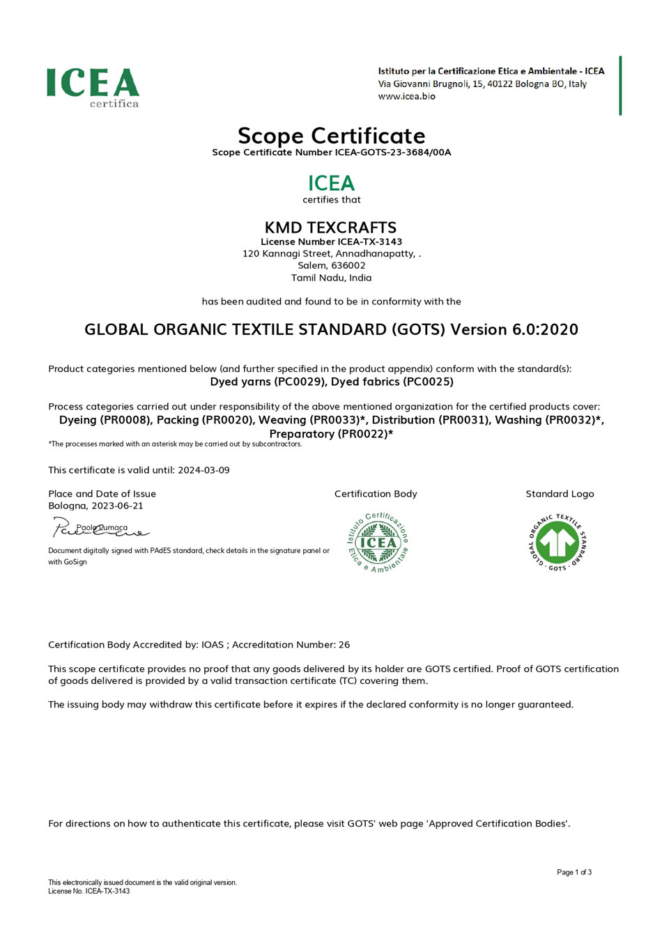 GOTS Certificate